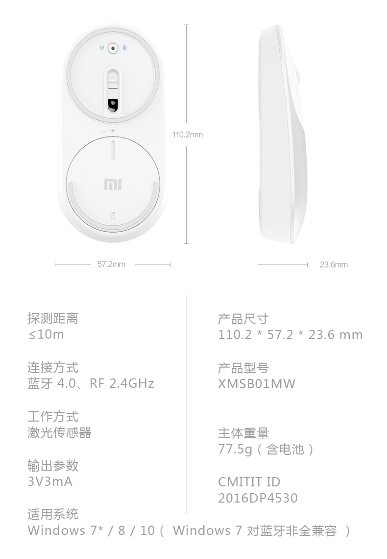 • 商品名称:小米便携无线鼠标