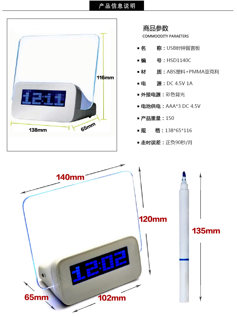 • 商品名称:USB时钟留言板